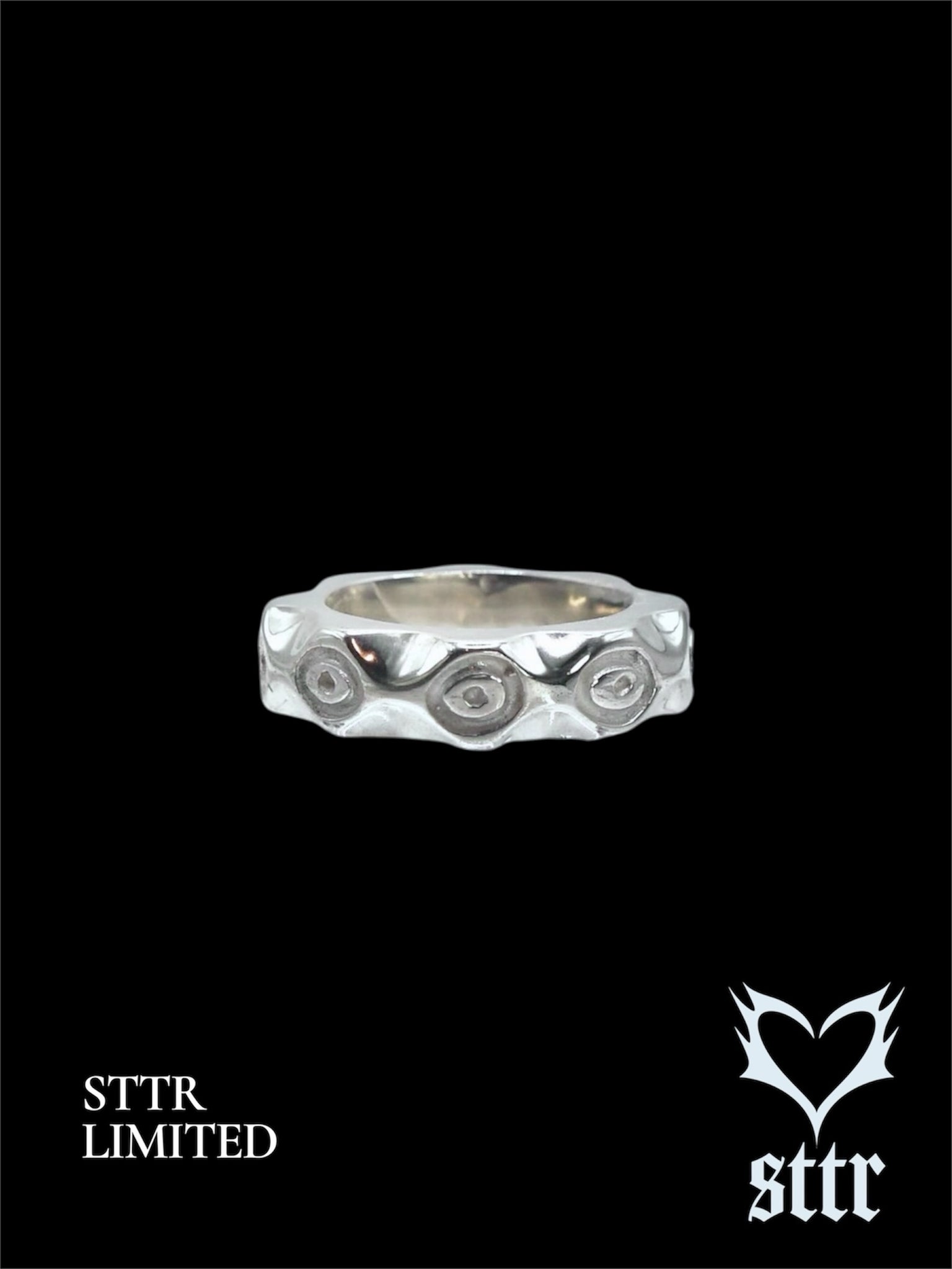—|- Handmade ring that was carved into wax before being casted and polished.